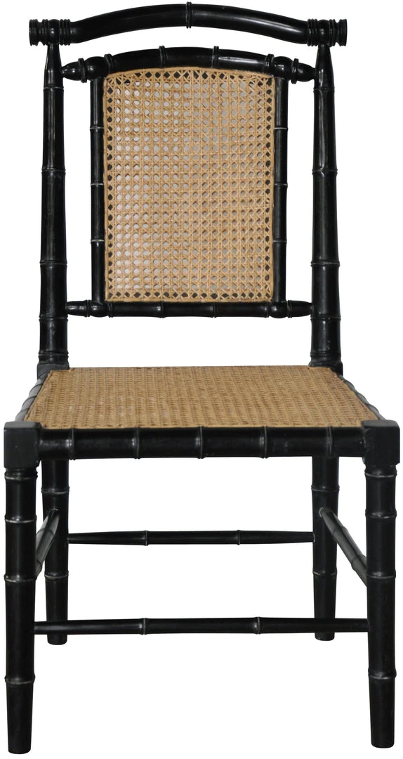 Hand-carved mahogany in a classic bamboo motif complements the bamboo seat and back of this classic colonial inspired armchair. Available in two finishes, deep brown and hand-rubbed black.