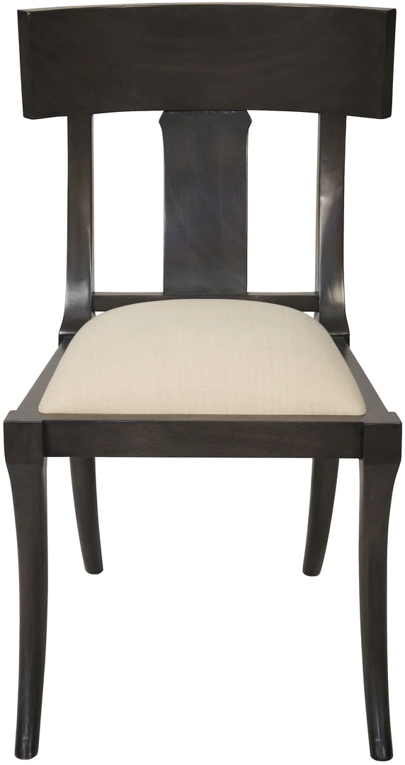 The Athena chair’s crisp white canvas seat perfectly complements the beauty of its hand-finished mahogany, but the piece de resistance in this stunningly lovely piece is its gracefully curved saber legs. Sheer elegance”