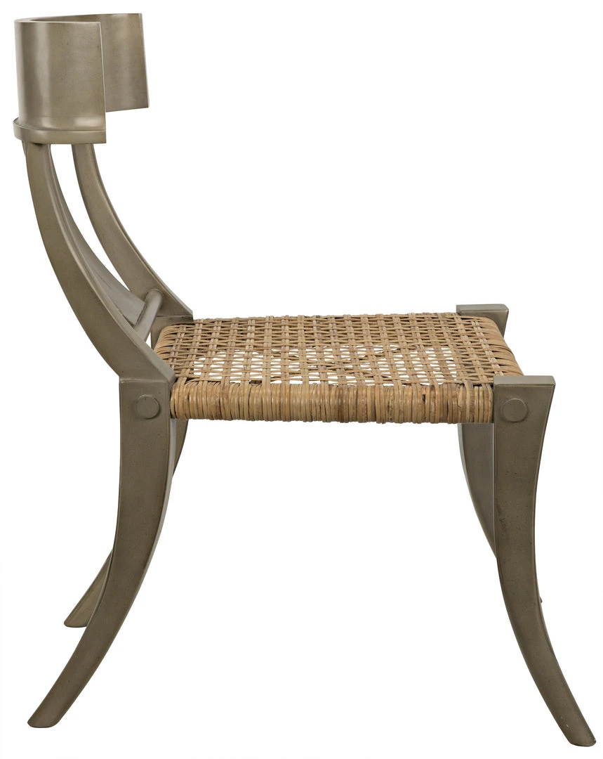 The Layton chair cleverly combines two familiar looks to create something entirely new” Back and legs are hand-carved mahogany; seat is hand-woven natural rattan.