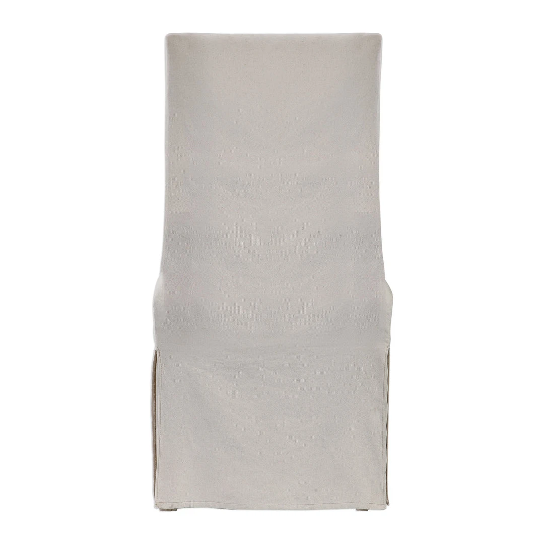 Simplistic In Form, This Casually Sophisticated Armless Chair Features A Tailored Off White Linen Blend Slipcover With A Plush Cushion Seat And Kidney Pillow For Added Comfort. Seat Height Is 20″.