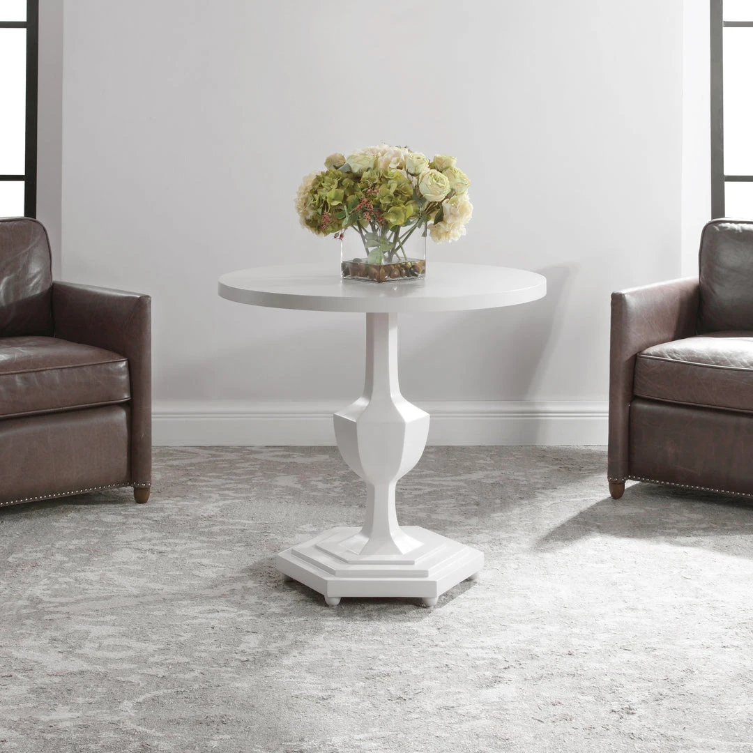 Showcasing A Geometric Shaped Base, This Traditionally Inspired Foyer Table Is Finished In Gloss White Giving It An Updated Modern Feel.