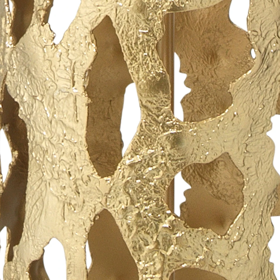 Tempering Italian opulence with a dash of Southern Californian charm, the Firenze lighting collection adds more than just light. Each piece is expertly crafted and finished by hand. The metal bases feature intricate, organically inspired cut-outs and richly textured finishes. Available in gold leaf or white on white, each is topped with a white linen shade and coordinating cylindrical finial.