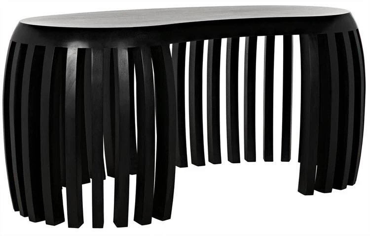 Extraordinarily unique and organically inspired, this curvy desk is distinguished by the extravagance of its many legs. Hand-carved of mahogany, it is available in your choice of two yin/yang finishes: deep hand rubbed black and bright whitewash.