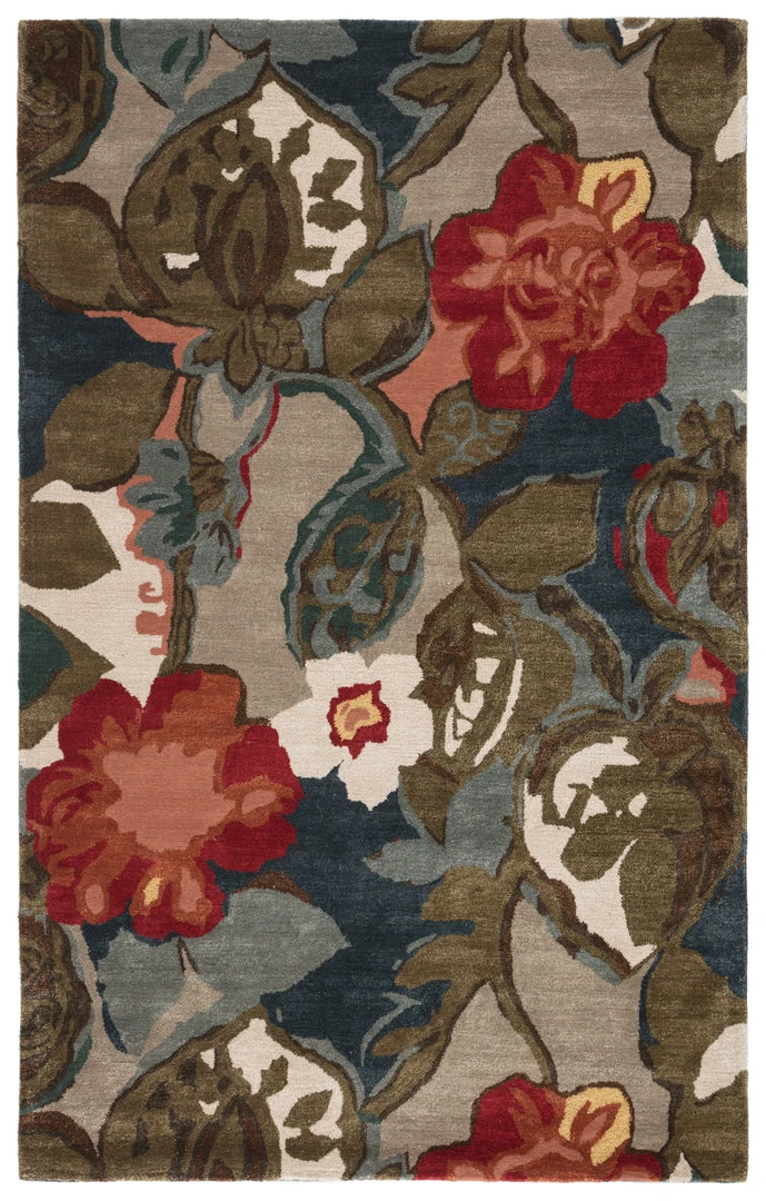 This hand-tufted area rug delivers artistic charm with soft yet playful hues. Watercolor blooms in white, green, midnight blue, and red create a large-scale design on the light gray backdrop, while the wool and viscose bl offers a sumptuous feel underfoot.