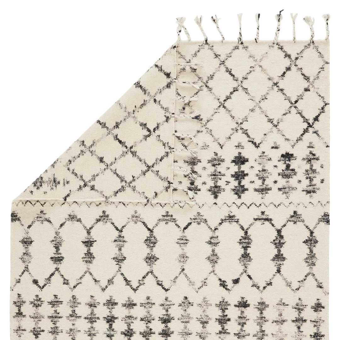 The Adair collection boasts a modern Moroccan aesthetic for a worldly dose of design. Artfully constructed of wool and luxurious recycled sari silk, this dark gray and white flatweave rug features a captivating trellis design. Boho braided fringe adds texture-rich detail to this exquisitely made accent.