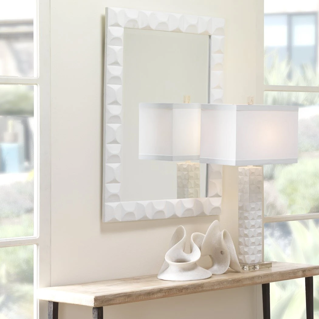 White gesso or plaster is a technique that has been inspired from “Plaster of Paris” from the early 1900’s. The Giacometti brothers were the first to use this technique in the art world. The three dimensional chiseled frame in plaster adds a modern touch to this piece.