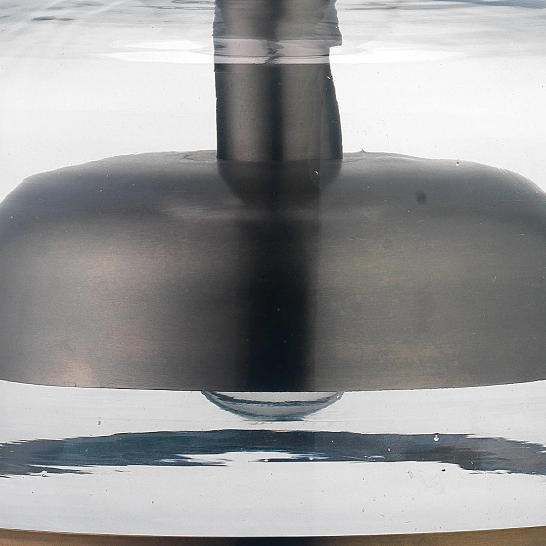 Modern Loft style metal and glass pendant with an unique conception of glass shade over metal.