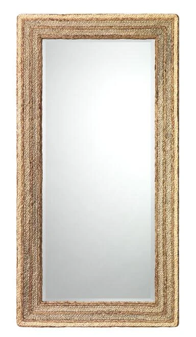 Braided seagrass wraps around the Evergreen Mirror’s long rectangle frame to highlight it’s geometric shape. The woven frame gently recesses towards the glass to add depth and dimension to this otherwise naturally, simple mirror.