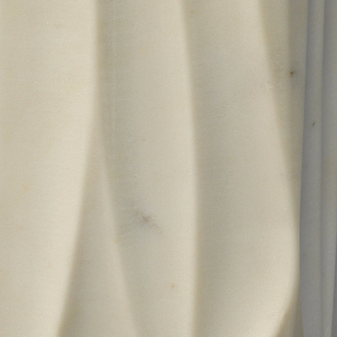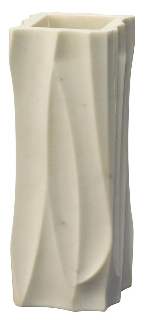 Our textured marble collection is inspired by the shapes and contours of ice and snow. The cool marble surface is constructed to elicit bold patterns in beautiful, monochromatic white accessory pieces. The weight of these objects reveal the substantial structure of the beautifully carved marble. Finish will vary, veining in marble is natural and will vary from piece to piece. Does not hold water. Interior vase dims: 3″w x 3″l x 11″h. Marble thickness: .75″