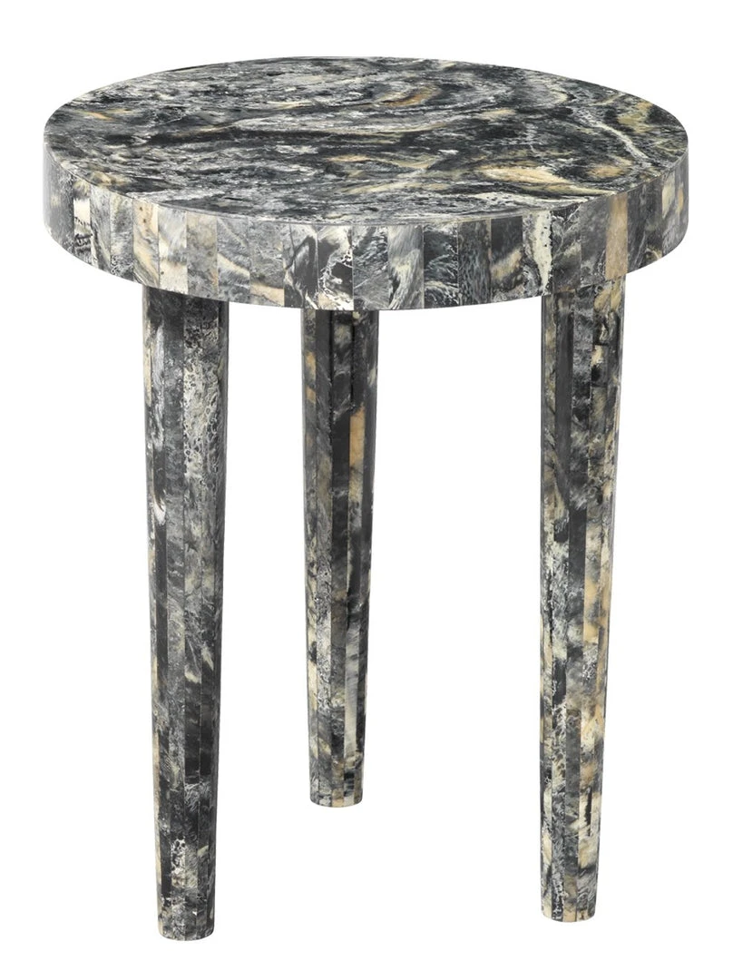 Swirled resin creates a captivating finish on this side table. Highs and lows of dark grey, whites and creams create endless swirls and unique patterns that will be different on each piece, making it truly a one-of-a-kind work of art.Finish will vary in shape, pattern and color. No two will be alike. Ships knock down, minor assembly required.