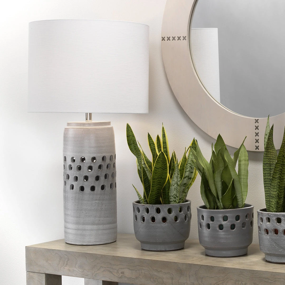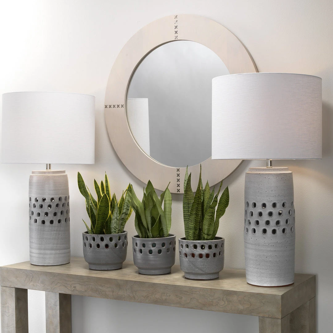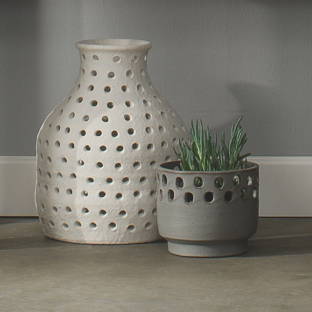 Our charming handmade ceramic lanterns can hold a candle and come in either a white or a grey imperfect finish.