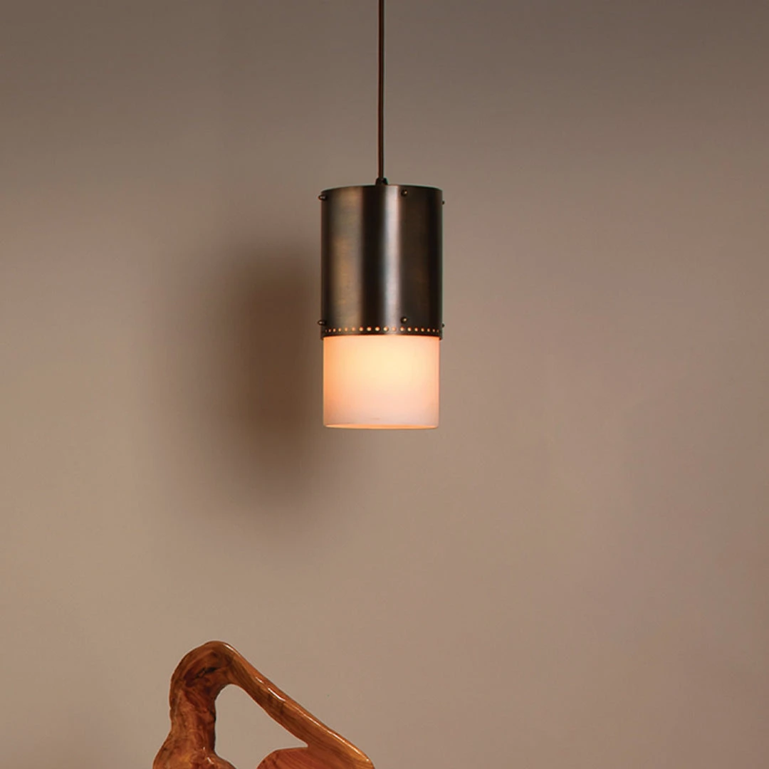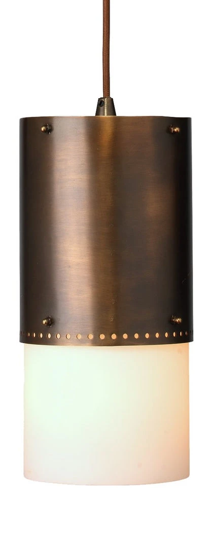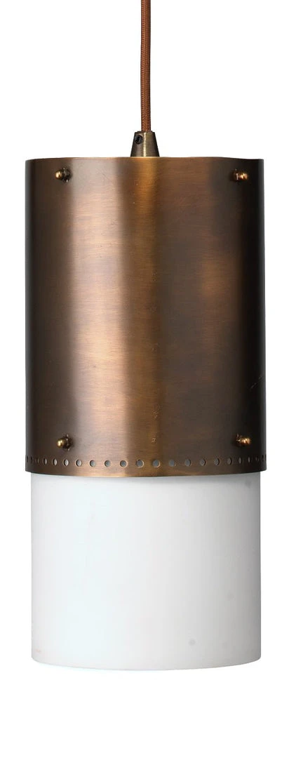 The Lazio Pendant has a beautiful light oiled bronzed patina that could be paired with both cool or warm metals. The white glass sleeve gives this pendant a modern touch.
