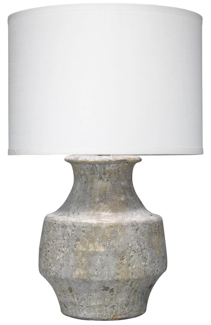 This ceramic lamp has a grey concrete texture and feel on a distinctive modern base.