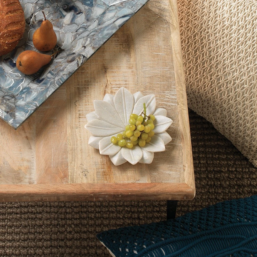 Marble pieces exhibit clean lines in an elegant material, allowing for a simple sophistication that at home in any space.