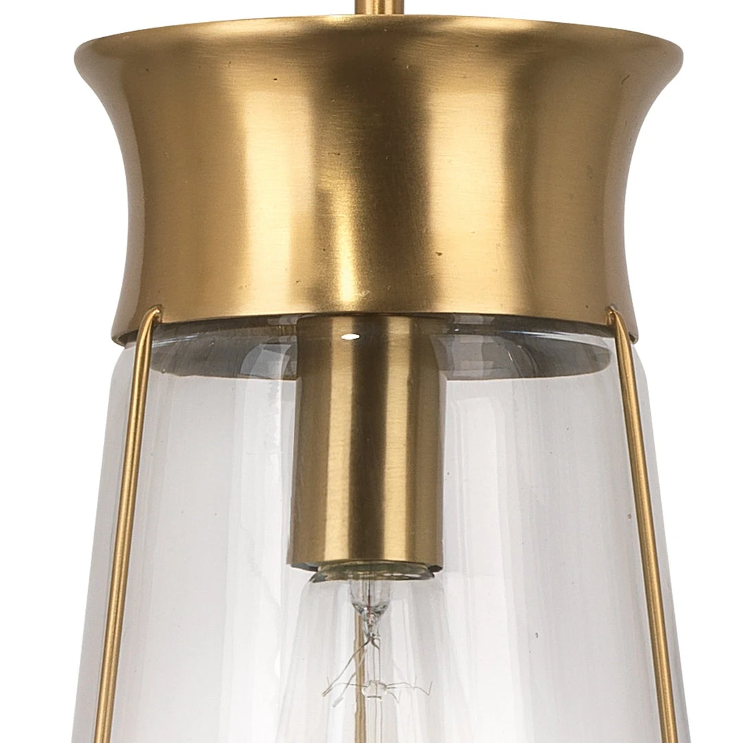 Clear glass, accented with antique brass metal makes this pendant an easy choice for any environment. Framed in metal, the glass adapts to any paint color or wallpaper. The simplicity of this pendant is accented only by the delicate detail of the chain.