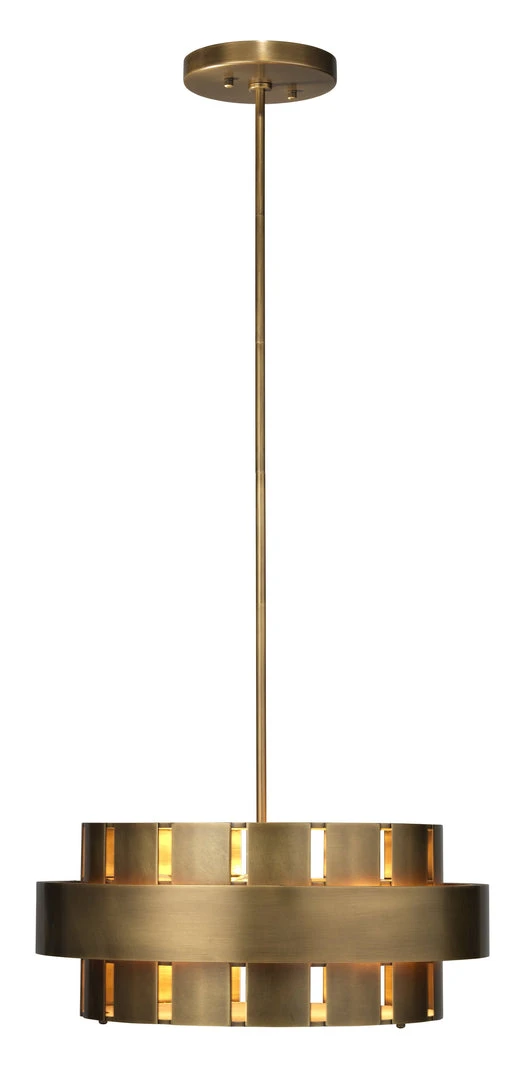 The inspiration for the Orbit pendants by Jamie Young is as unique as the lamps. She pulled from elements as disparate as the medieval turrets of European castles to the sleek circular designs popular in mid-century modern to create them! An intriguing blend of masculine and feminine, they are finished in a burnished antique brass. Available in two sizes, each includes a coordinating adjustable rod and canopy, and an acrylic diffuser to remove any harshness from their bulbs. The bulbs are not visible when sittin gunder the fixture.