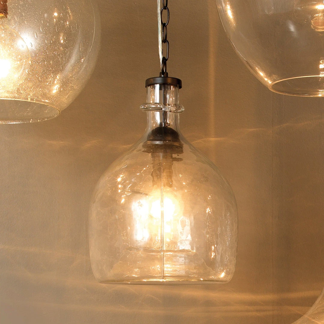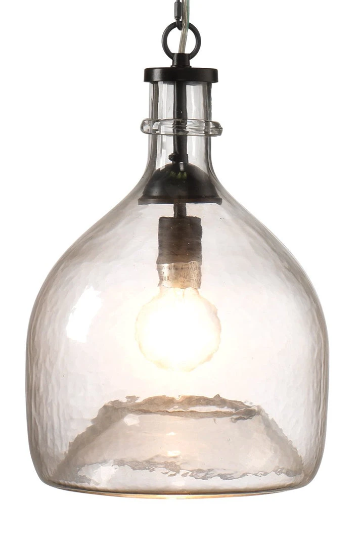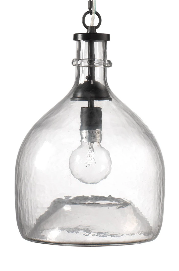 8 foot black chain with clear cord. 5 inches diameter black iron ceiling plate. Extemely versitile, this clear small glass pendant is perfect for any space.