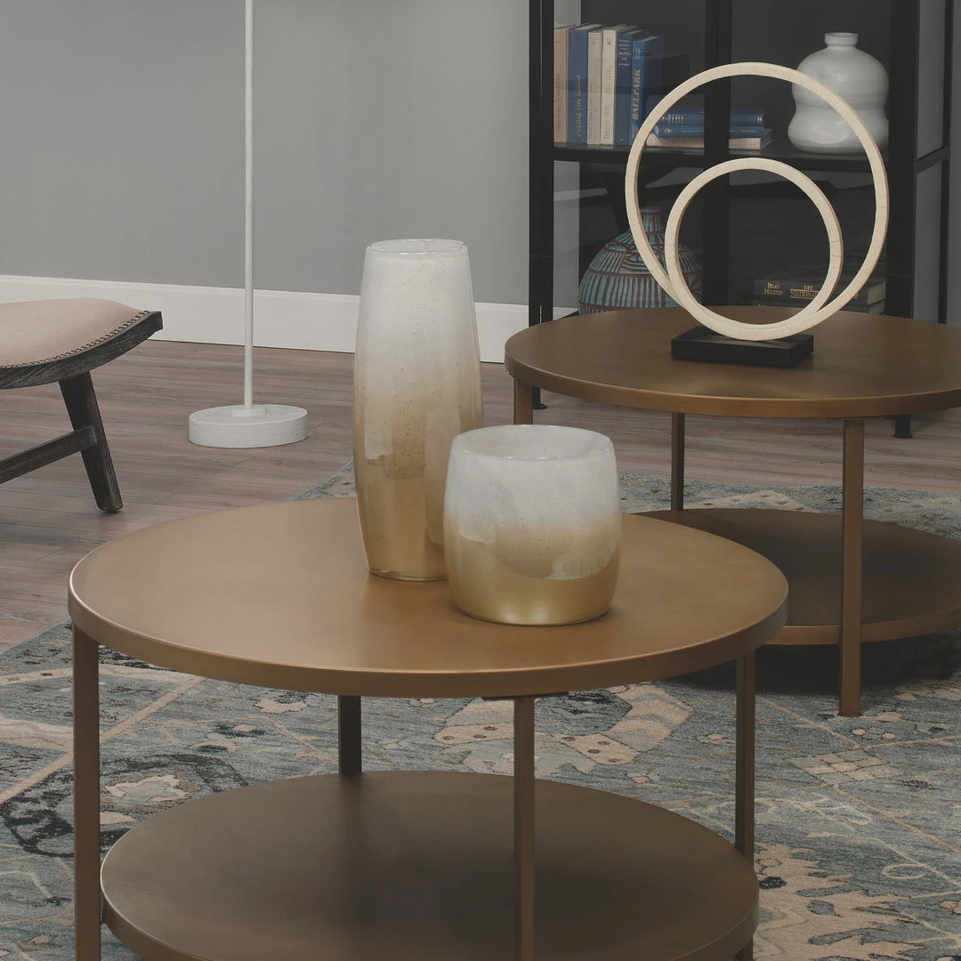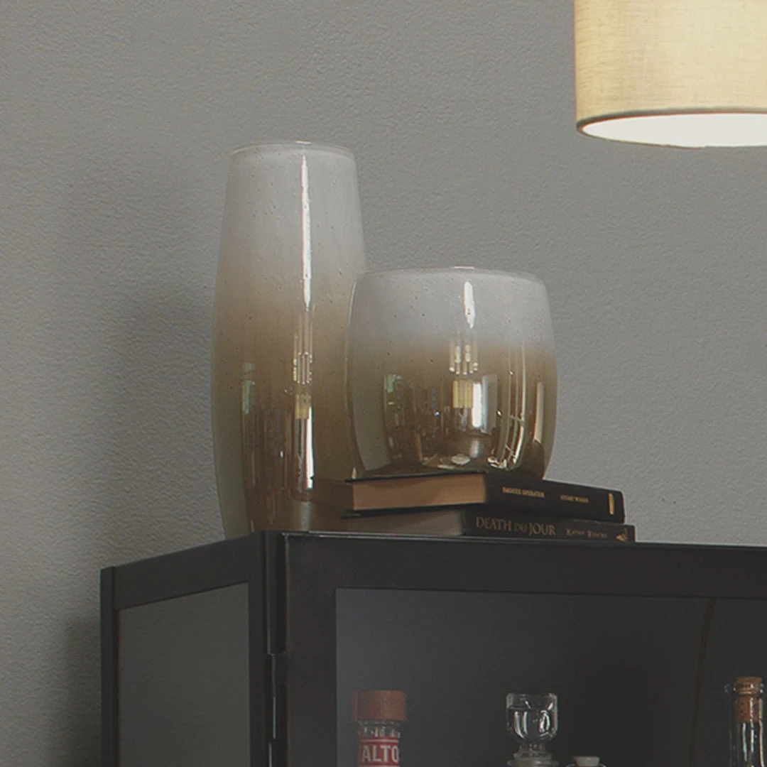 These handblown glass vases hold water and have a beautiful ombre finish that transitions from white to a soft gold.