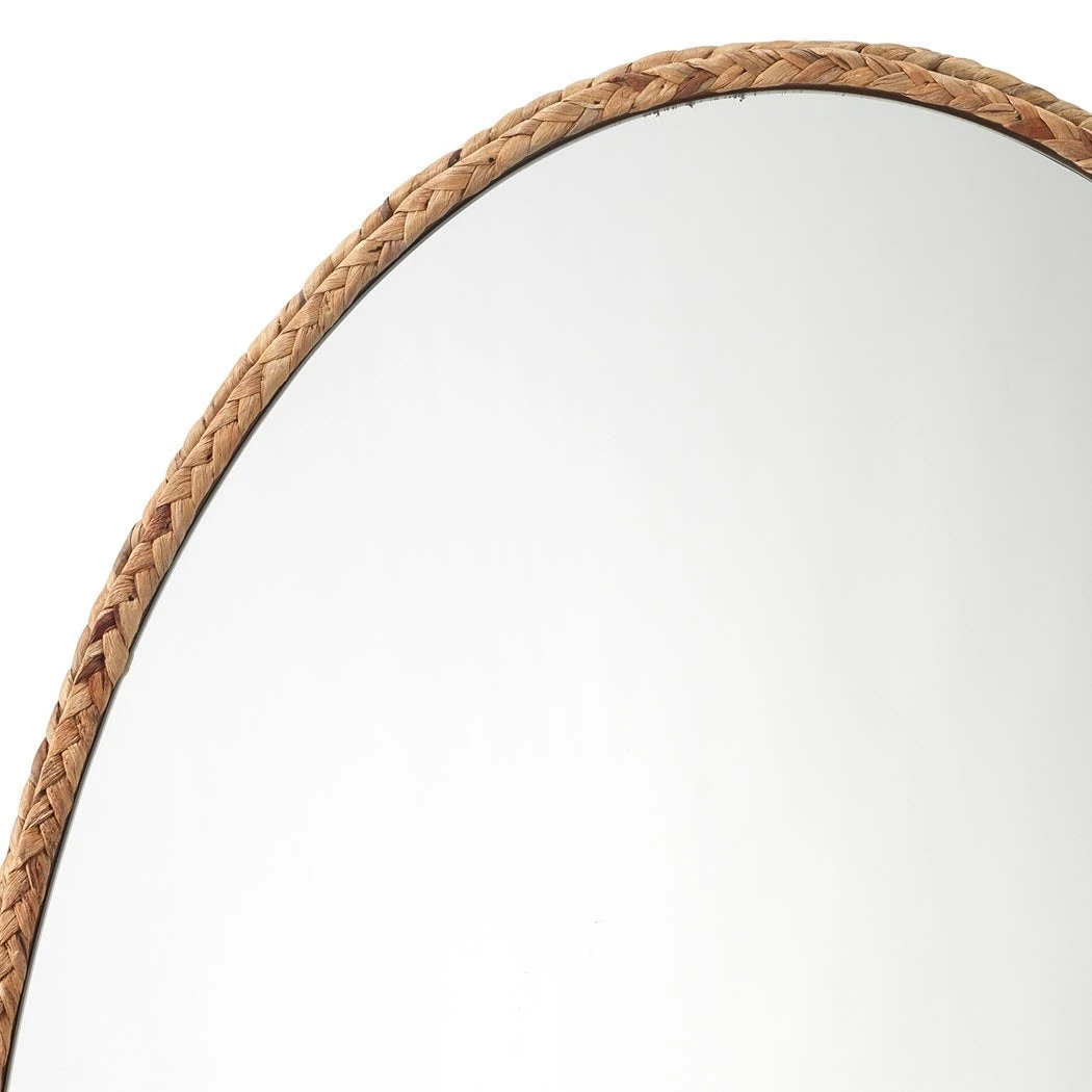 Three plaits of hand-braided seagrass form the frame of this casually charming wall mirror. Tropical without the cliches, its easy elegance allows it to be effortlessly integrated into any décor style. It measures a touch over forty-inches tall and approximately twenty-five inches wide and can be hung horizontally or vertically. Due to its artisan crafted nature, the textures and finishes may vary slightly, and some slight fraying of the seagrass can occur.