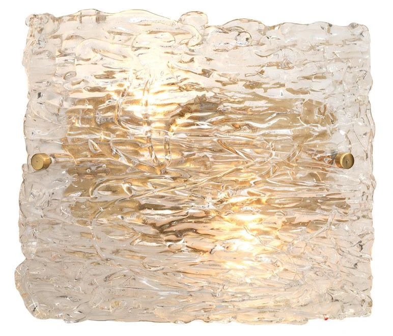 Delicate layers of highly textured glass is subtly curved around an antique brass backplate. As light streams through layered glass, the rivers of texture are highlighted, giving any space a serene ambiance.