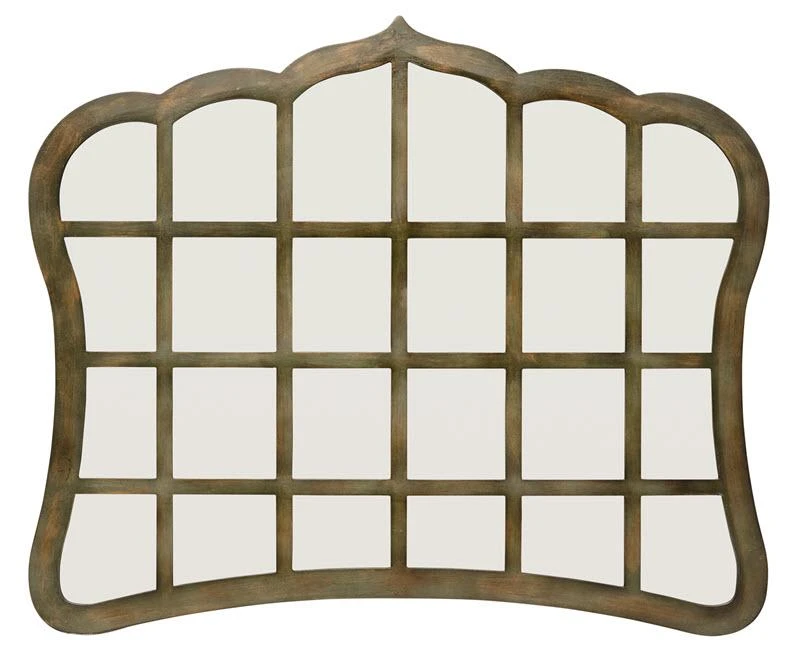 This mirror hangs horizontally only. This mirror is the perfect blend of elegant and rustic with its antique design and green washed wood.