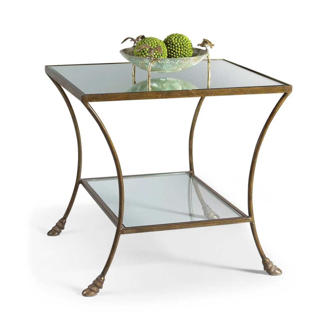 Antique Bronze Finish With Mirrored To And Glass Bottom Shelf