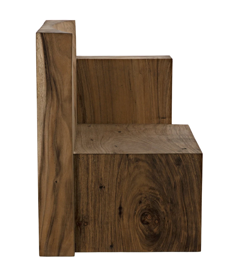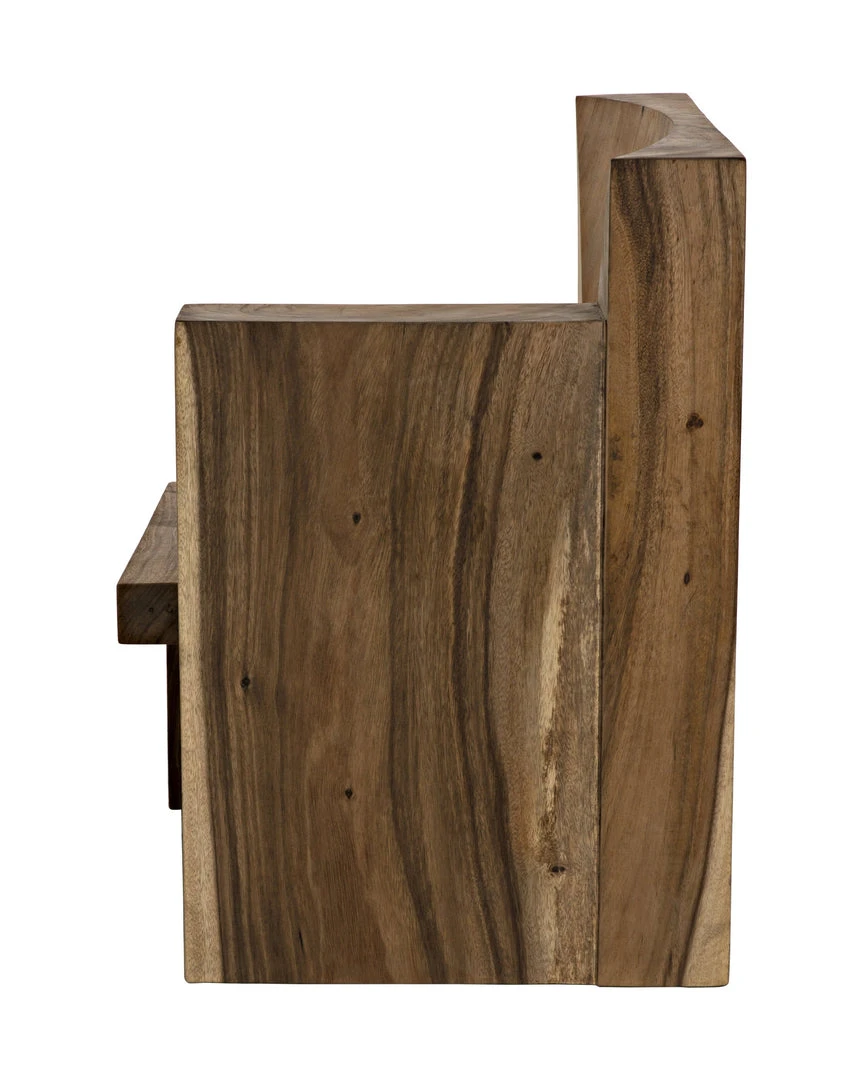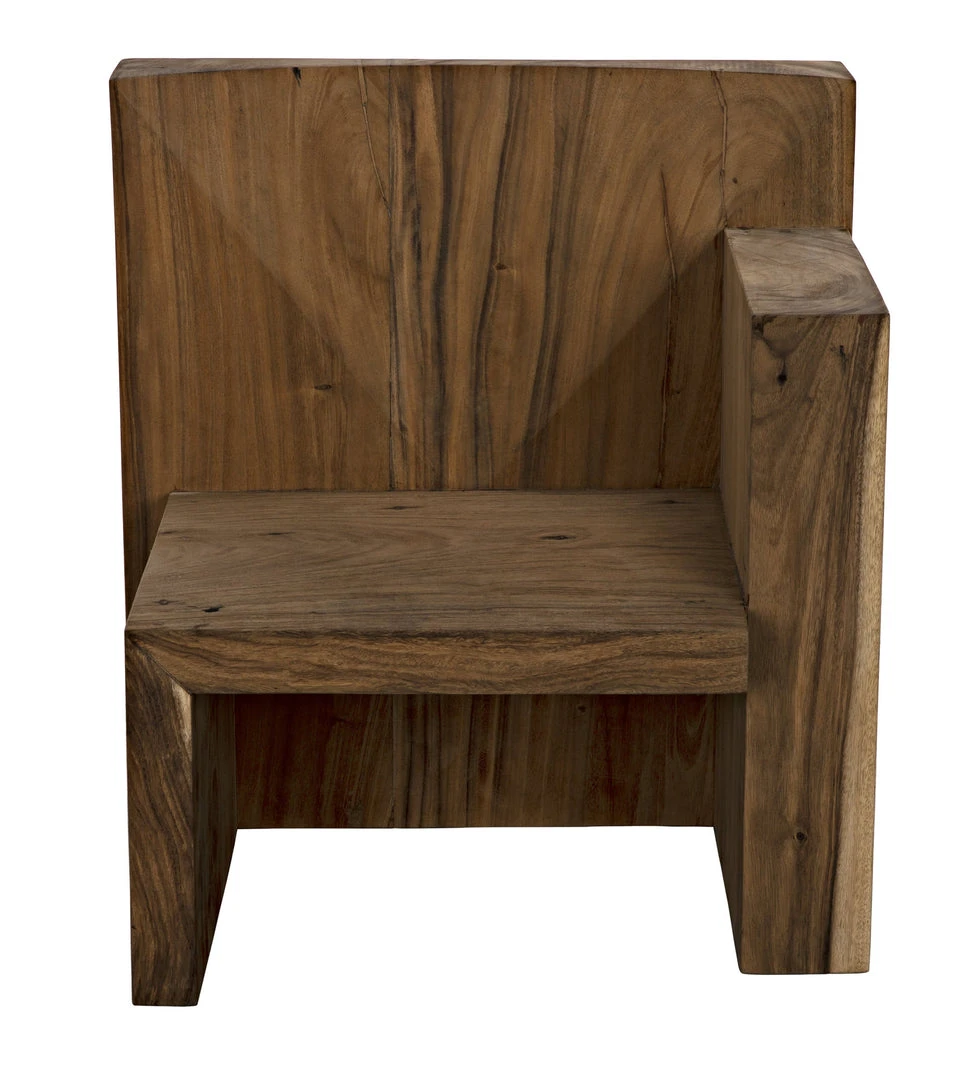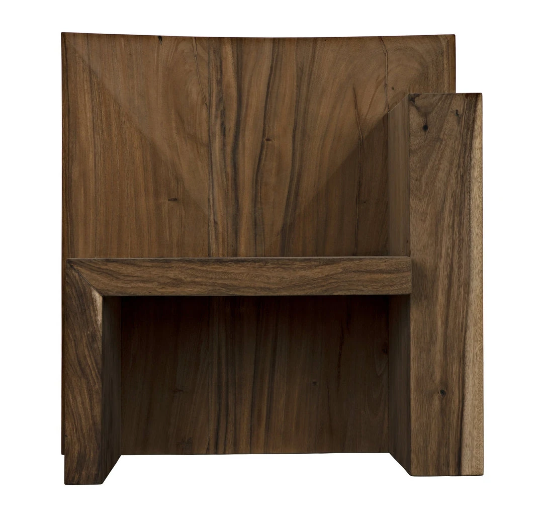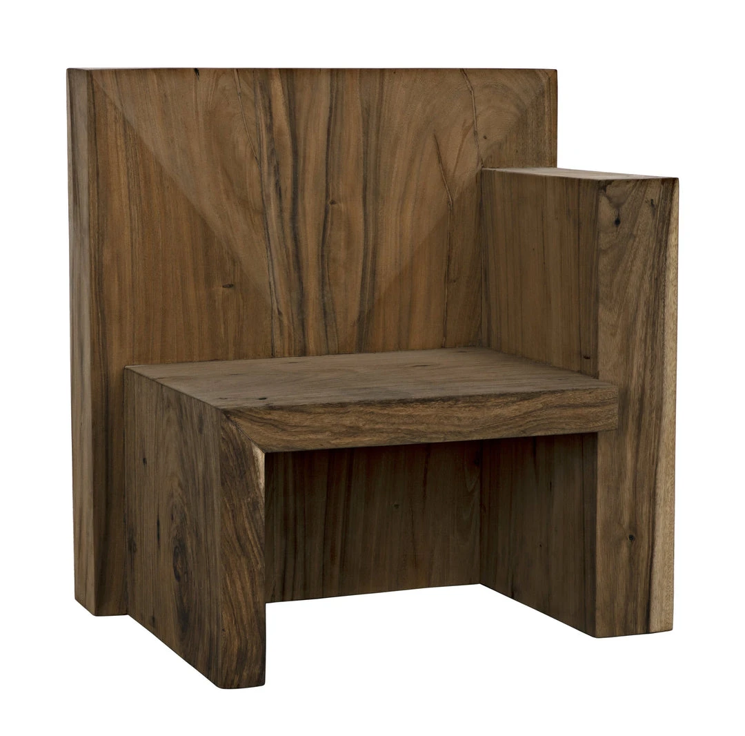 Throne-like and majestic, the Amun chair is created with solid blocks of munggur wood with a simple waxed finish that the reveals the natural veining and patterns of the material. As no two pieces of wood are alike, no two chairs will be identical.