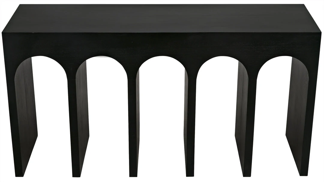 This stunning console takes its design inspiration from suspension bridges. Its graceful arches add interest without overwhelming, and its hand-rubbed black finish maximizes the mahogany’s beauty,
