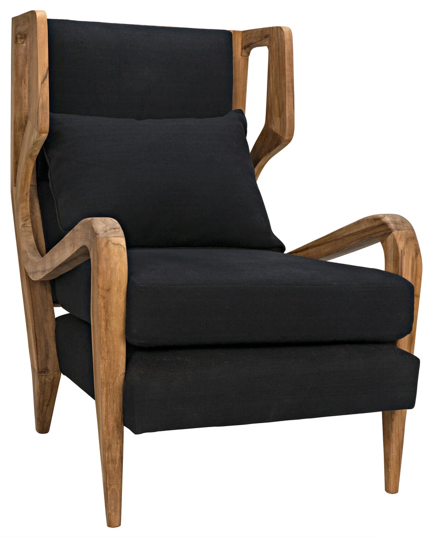 This chair mirrors its Windsor influenced lines in both its base and back, and adds a softly curved back and seat. Solid teak construction in a natural finish are like icing on the cake.