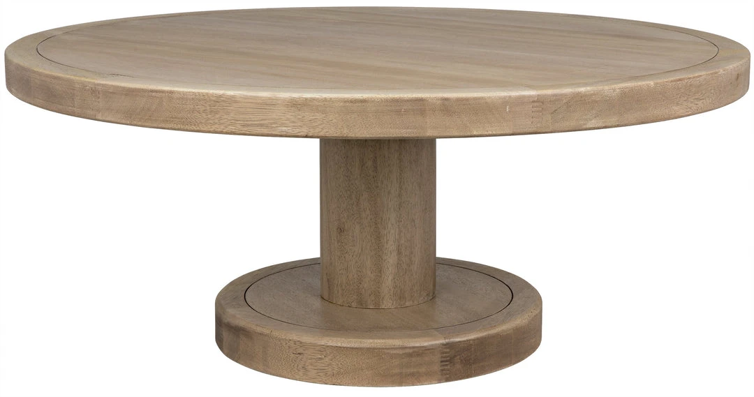 A traditional round coffee table is presented here, beautifully made of washed walnut, proving yet again that simple is sometimes best.