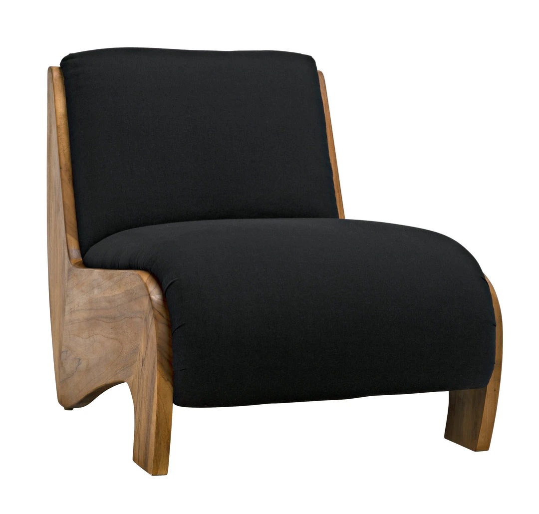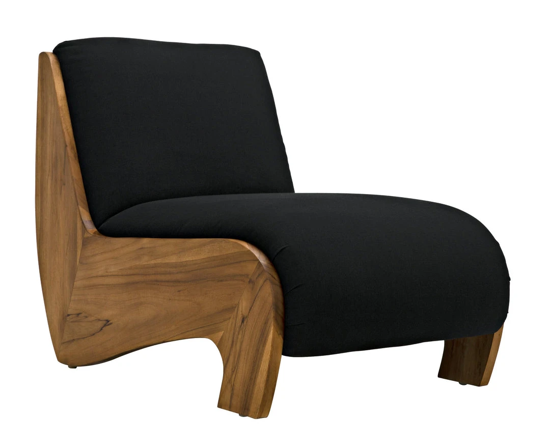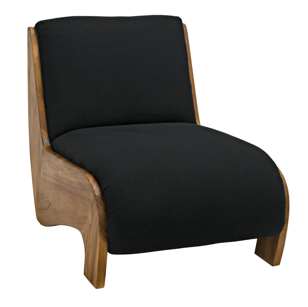 Darker and moodier than your average mindi wood chair, the Pretoria is finished in Noir’s rich Sombre finish. The dark, sheer finish highlights the incredible grain of the wood and adds an unexpected level of sophistication to its lovely curves. A black cotton seat provides comfort.