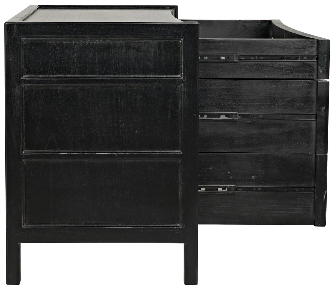 Hamptons side tables have an easy, sophisticated style that transcends trend. Hand-carved of the finest mahogany and accented with simple metal pulls, they are the essence of elegance. Each offers three drawers for storage.