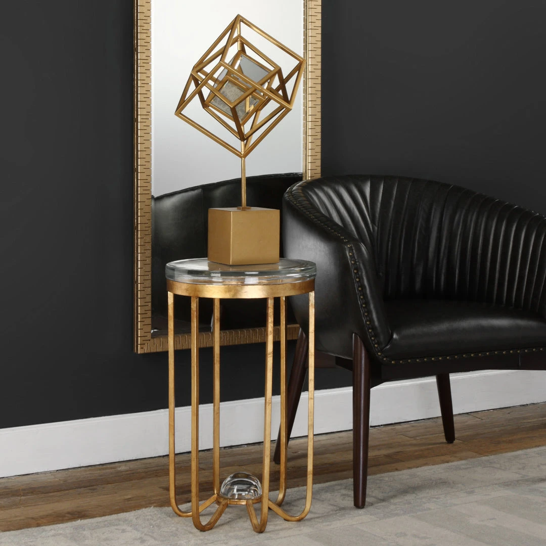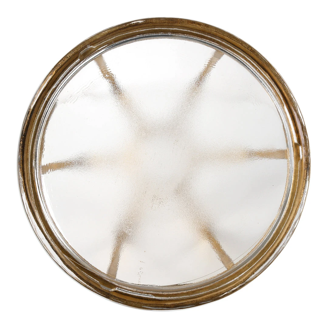 Thick Rounded Block Glass, On Elegant Hand Forged Iron With A Hand Applied, Lightly Antiqued Gold Leaf, Creating This Classic Glam Accent Piece.