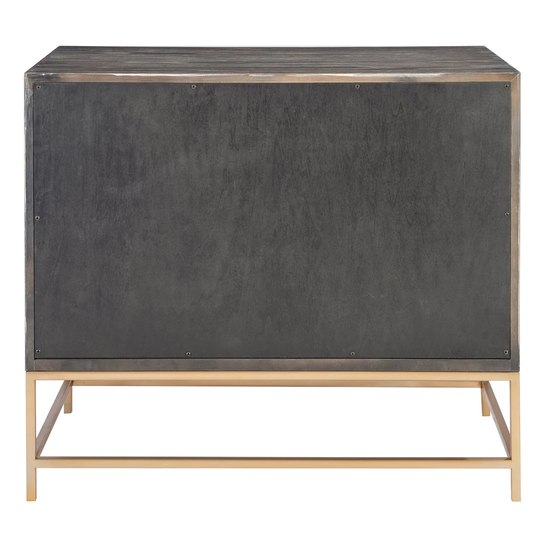 Showcasing Understated Style, This Two Drawer Chest Is Layered In A Dark Walnut Finished Oak Veneer Accented With Herringbone Drawer Fronts. Rests On A Steel Base In Plated Brushed Brass With Coordinating Drawer Pulls.