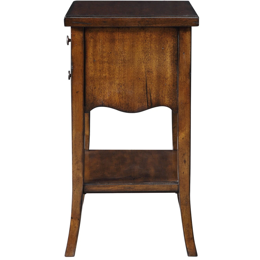 Casual Styling In Warm, Old Barn Finish With Three Dovetail Drawers, Pewter Finished Knobs, And Distressed Primavera Veneer.