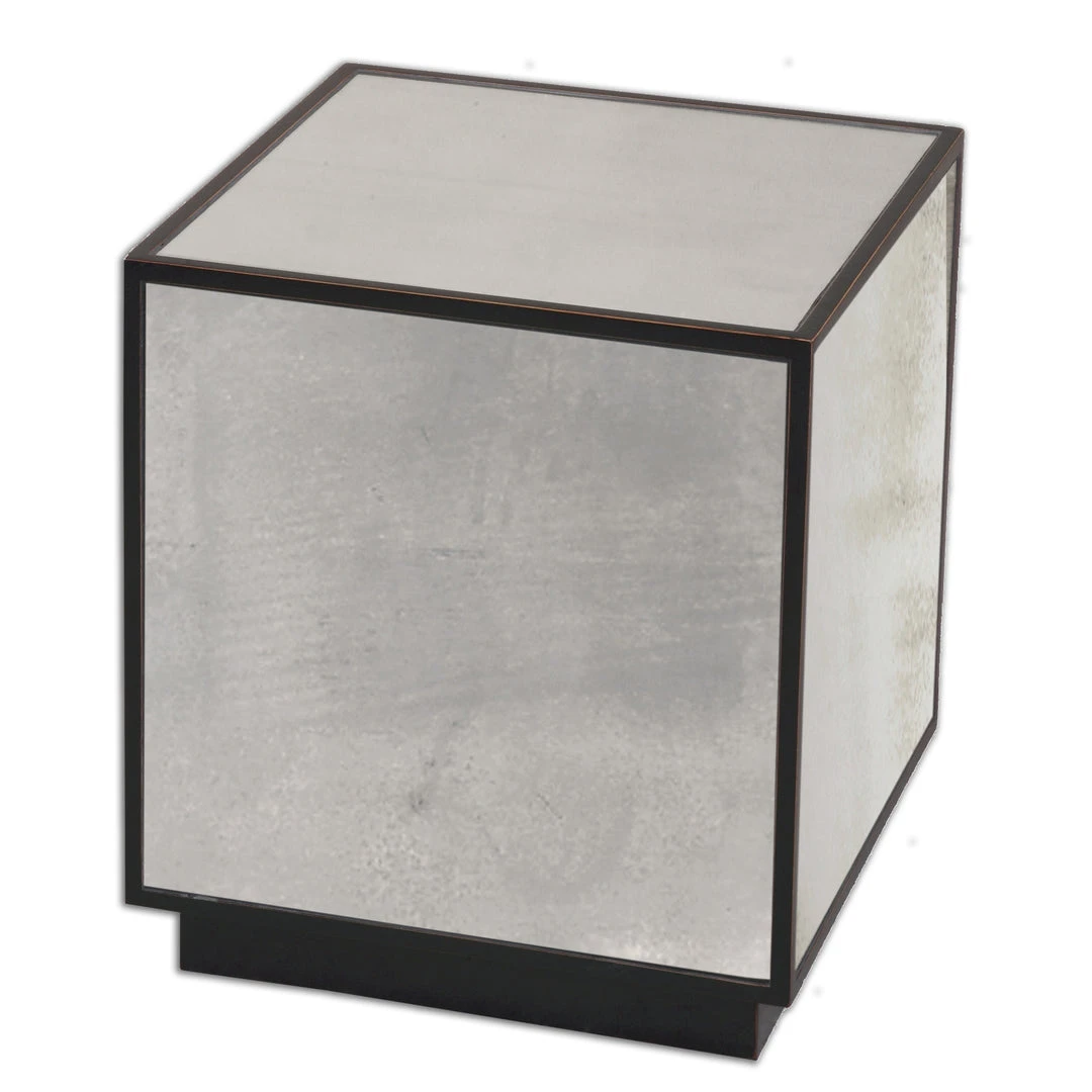 Aged Black Cube With Red Undertones, Faceted With Antiqued Mirrors.