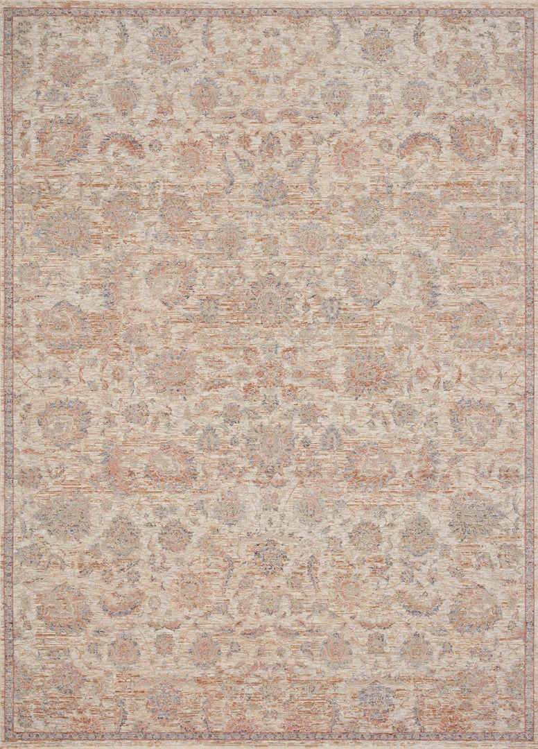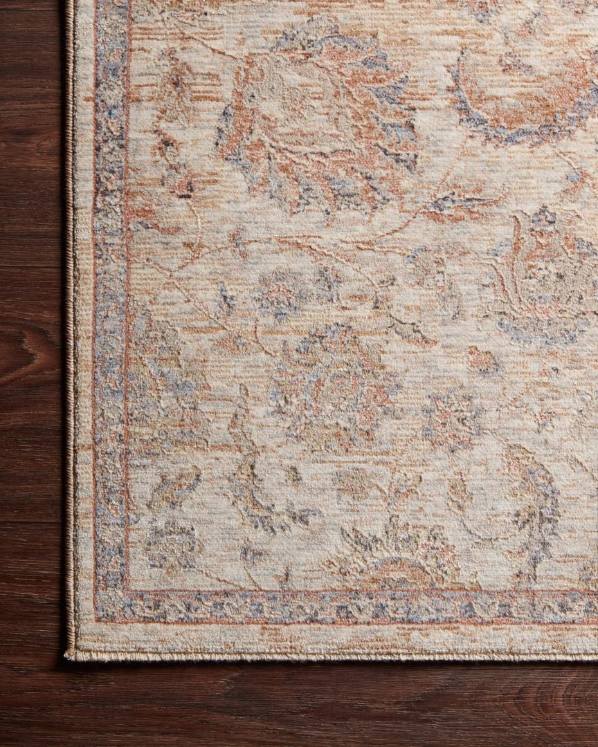Power-loomed of polyester and viscose in Turkey, the Faye Collection displays a soft color palette and a mix of distressed and traditional-inspired motifs.