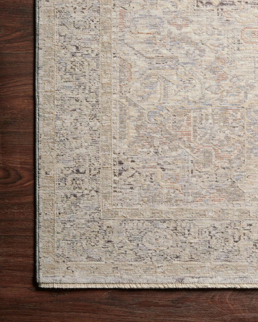 Power-loomed of polyester and viscose in Turkey, the Faye Collection displays a soft color palette and a mix of distressed and traditional-inspired motifs.
