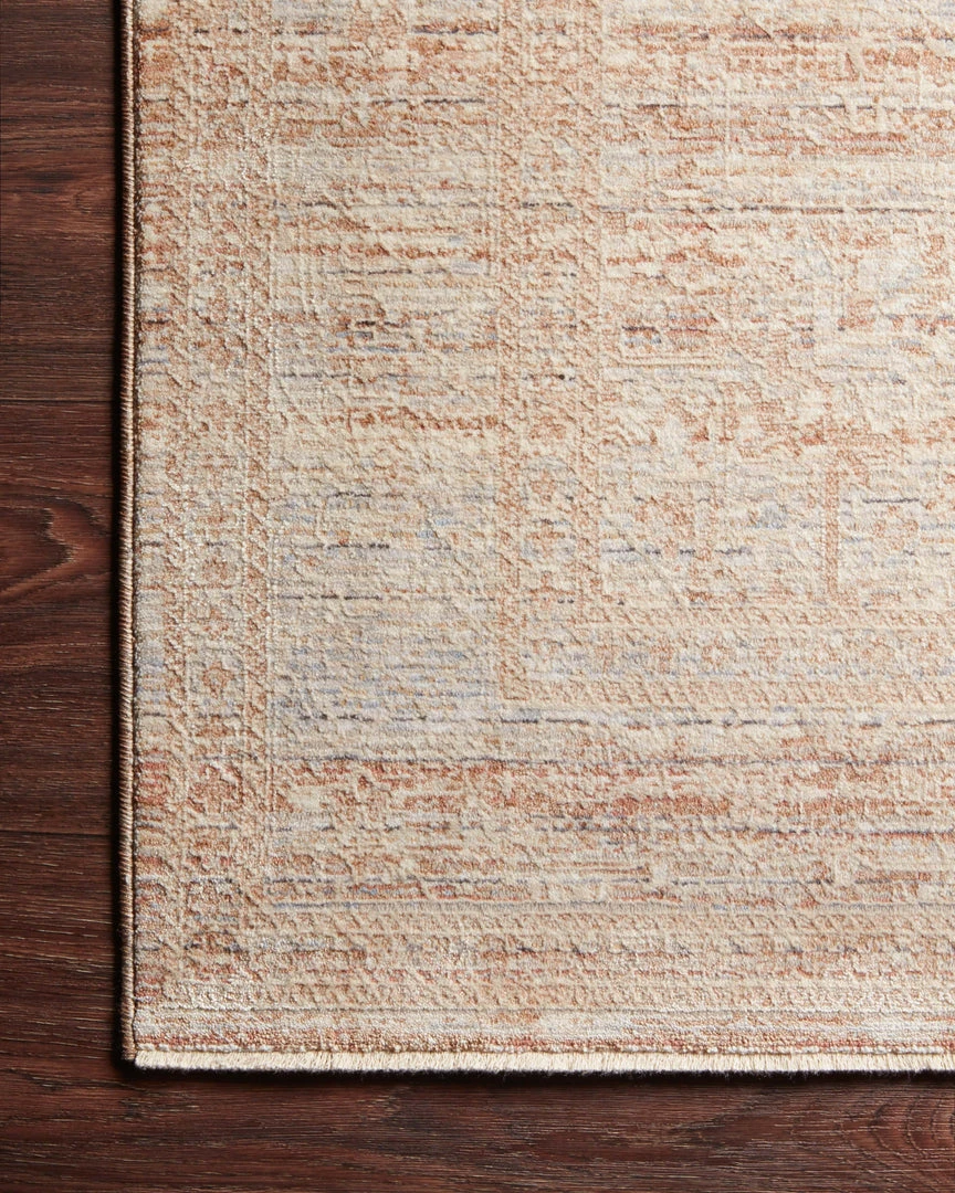 Power-loomed of polyester and viscose in Turkey, the Faye Collection displays a soft color palette and a mix of distressed and traditional-inspired motifs.