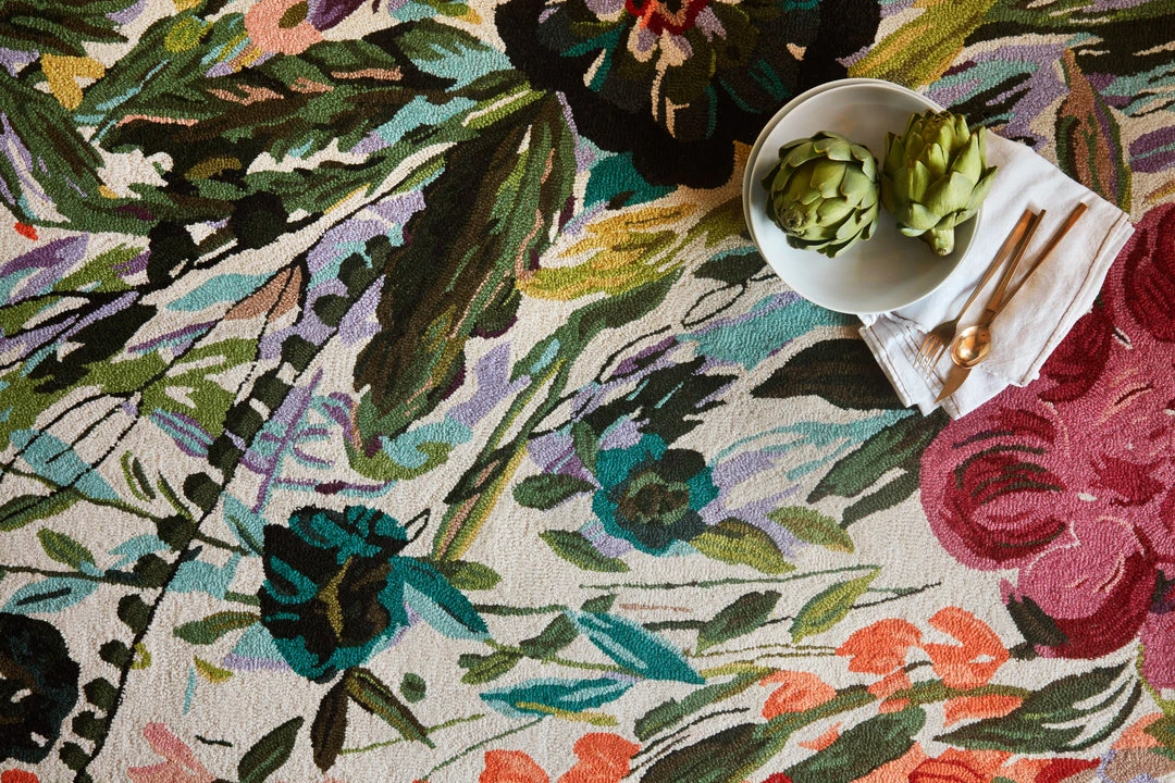 Created in collaboration with artist and painter Bari J, the Wild Bloom Collection captures the essence of a traditional floral painting whilst providing the softness and comfort of a rug. Hooked of 100% wool pile by skilled artisans, this collection flourishes with color making it versatile enough for any home.