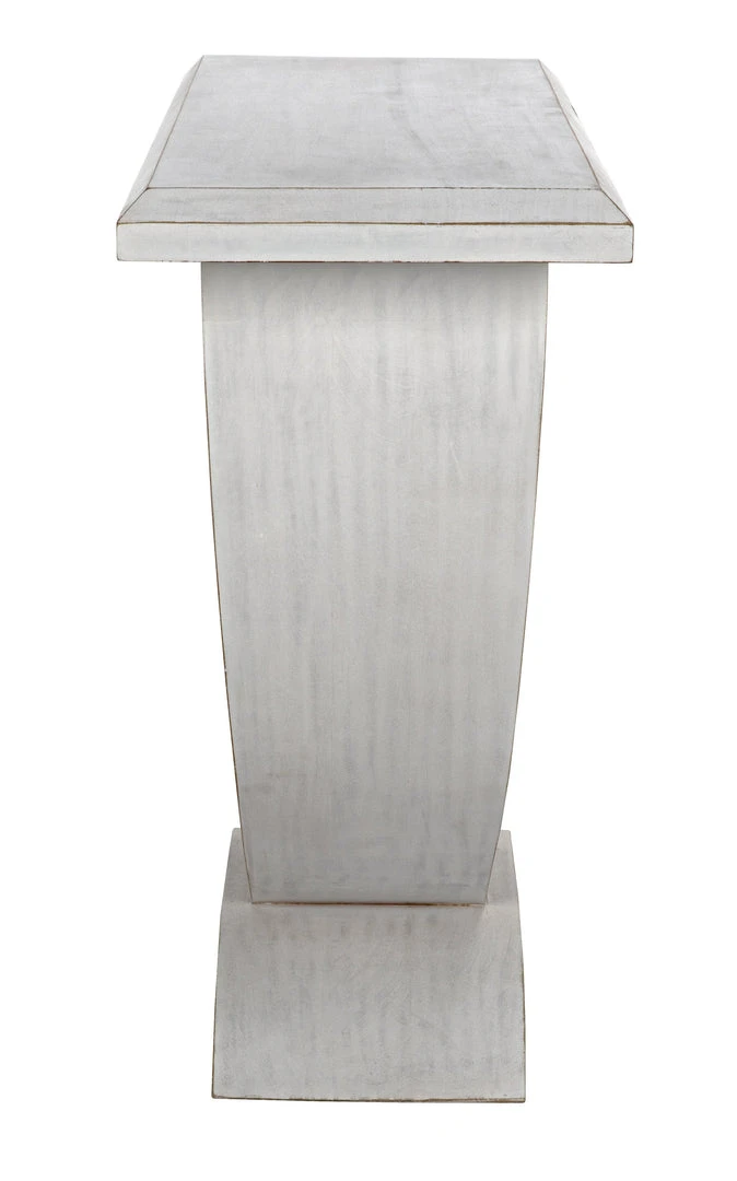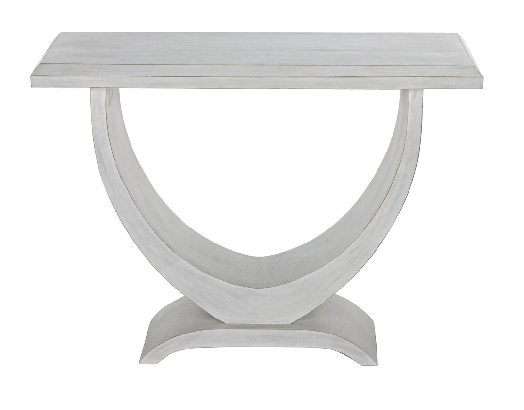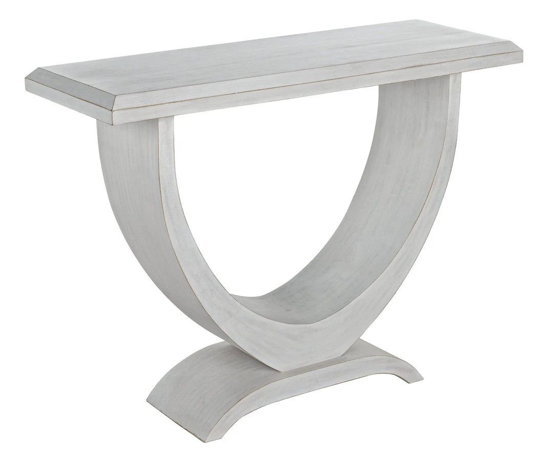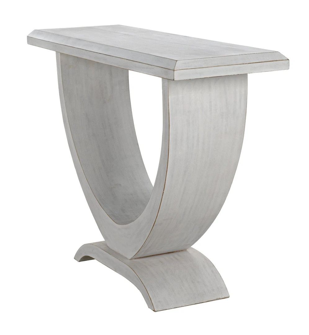 Classically elegant, with gently curved lines, the Baal console is the rare accent piece at home in decors from traditional to contemporary. Crafted of mahogany and veneer, its pale finish is subtly accented with light brown trim along the edges.