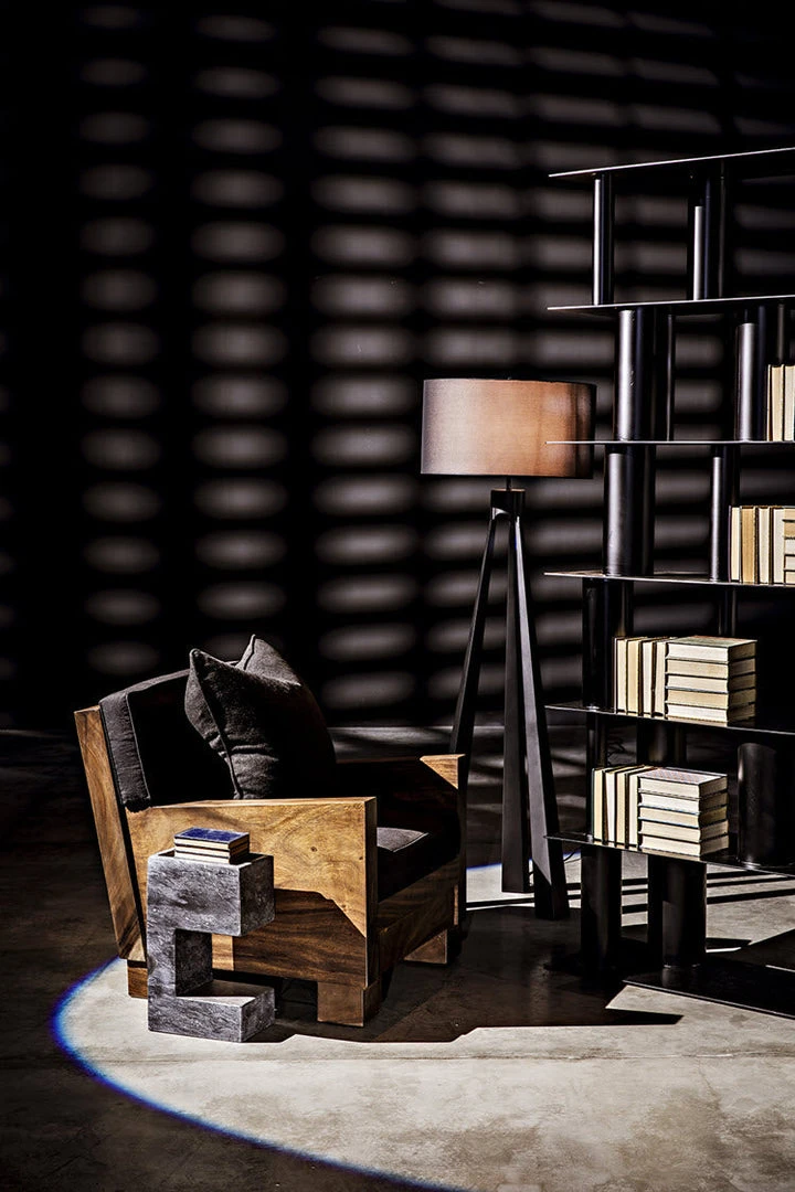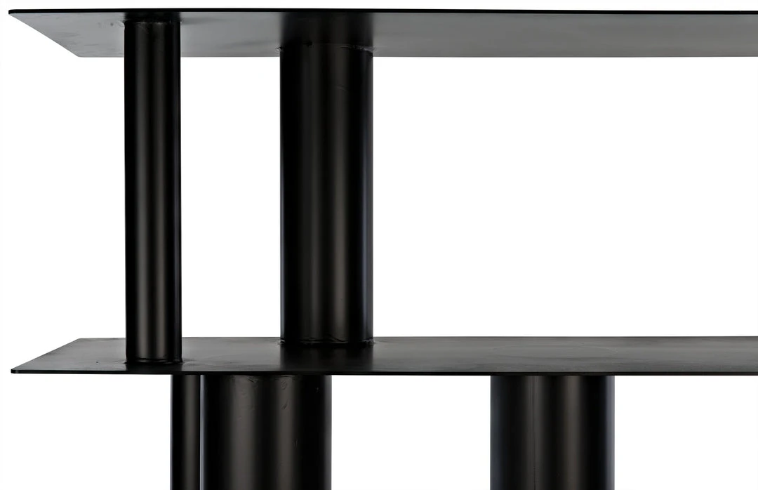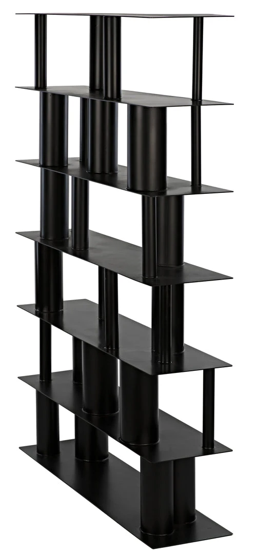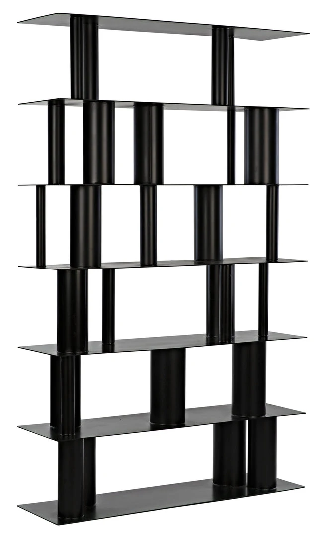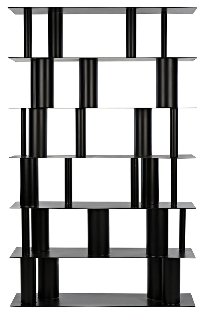 This pared down, industrial inspired bookcase is the essence of simplicity. Handcrafted of metal with a unique cylindrical design and a deep black finish, it is sleek, sophisticated, and very contemporary.