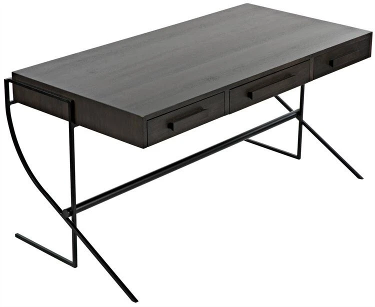 This classic writing desk is distinguished by its masterful craftsmanship. Its classic lines are enhanced with a dark walnut finish, and its four drawers open easily with metal pulls.