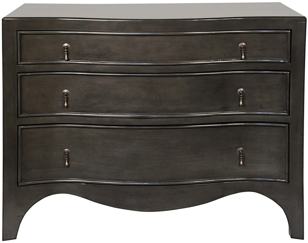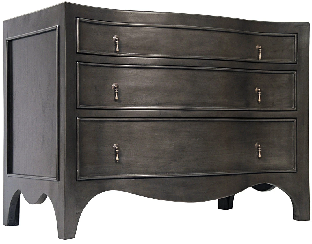 A traditional three drawer dresser is elevated by excellent craftsmanship, the finest quality materials, and a pale finish that unselfishly allows the mahogany’s natural beauty to be its focal point.