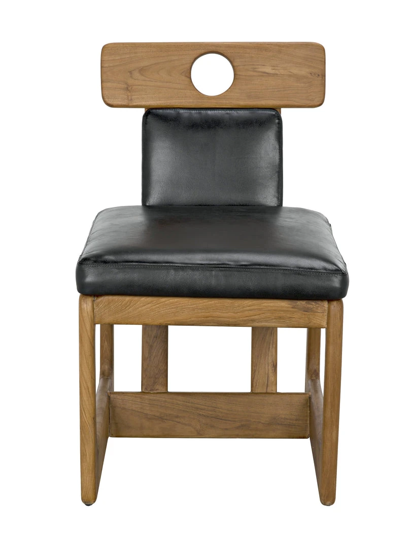 The Buraco seating collection features a selection of mid-century inspired options, each expertly handcrafted of teak with hand-applied clear coat satin finishes. Upholstered in rich black leather for comfort, they are distinguished by their geometrical elements and masterful handcraftsmanship.