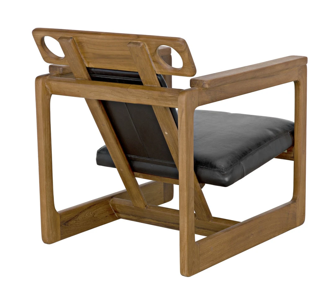 The Buraco seating collection features a selection of mid-century inspired options, each expertly handcrafted of teak with hand-applied clear coat satin finishes. Upholstered in rich black leather for comfort, they are distinguished by their geometrical elements and masterful handcraftsmanship.