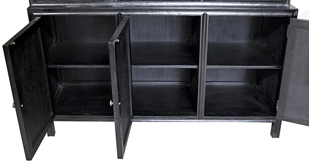 This lovely solid mahogany hutch has been expertly designed with the look of an heirloom piece. With its simple lines, fifteen cubbies, and masterful construction it is sure to become one” Hand-rubbed black finish.