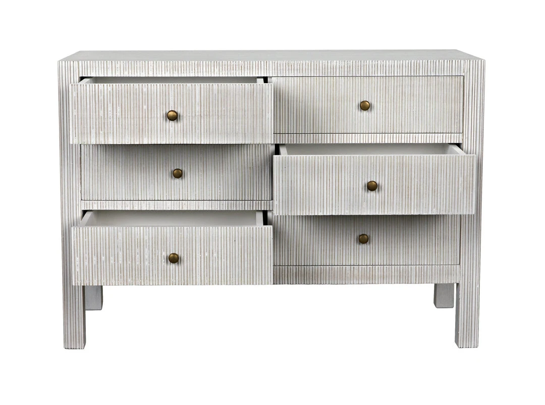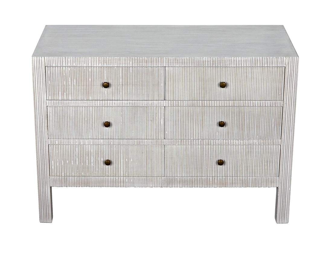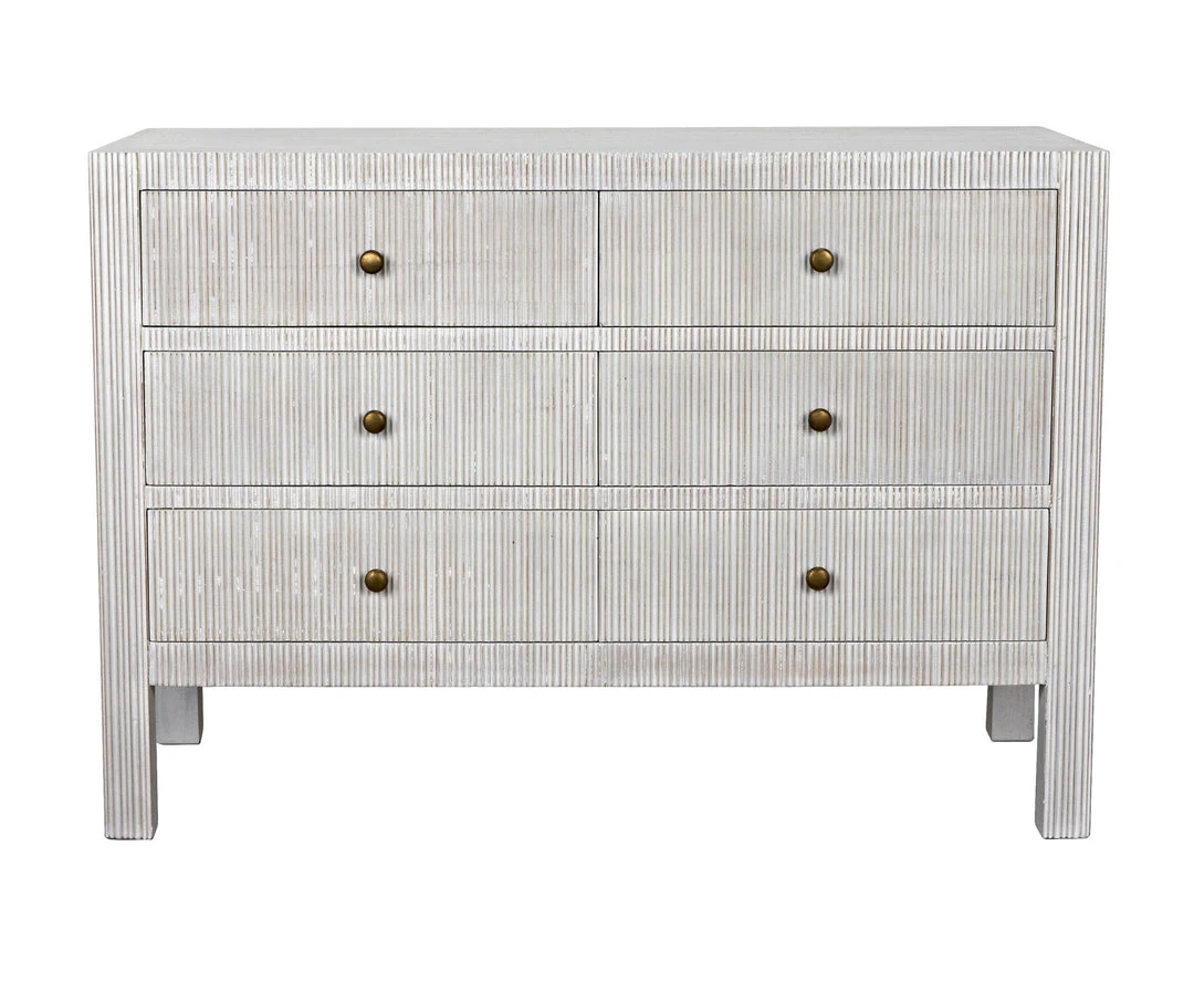 Noir Conrad 6 Drawer Dresser, White Wash Chests & Cabinets