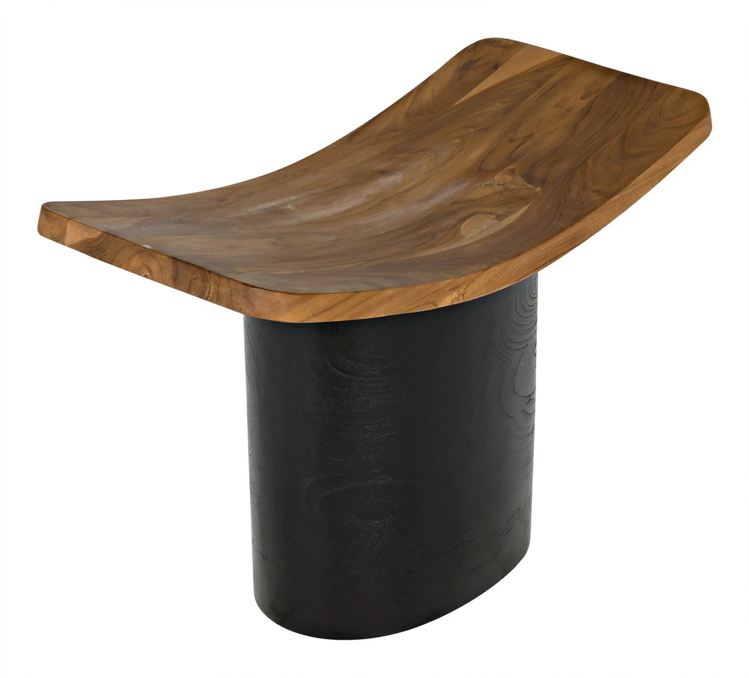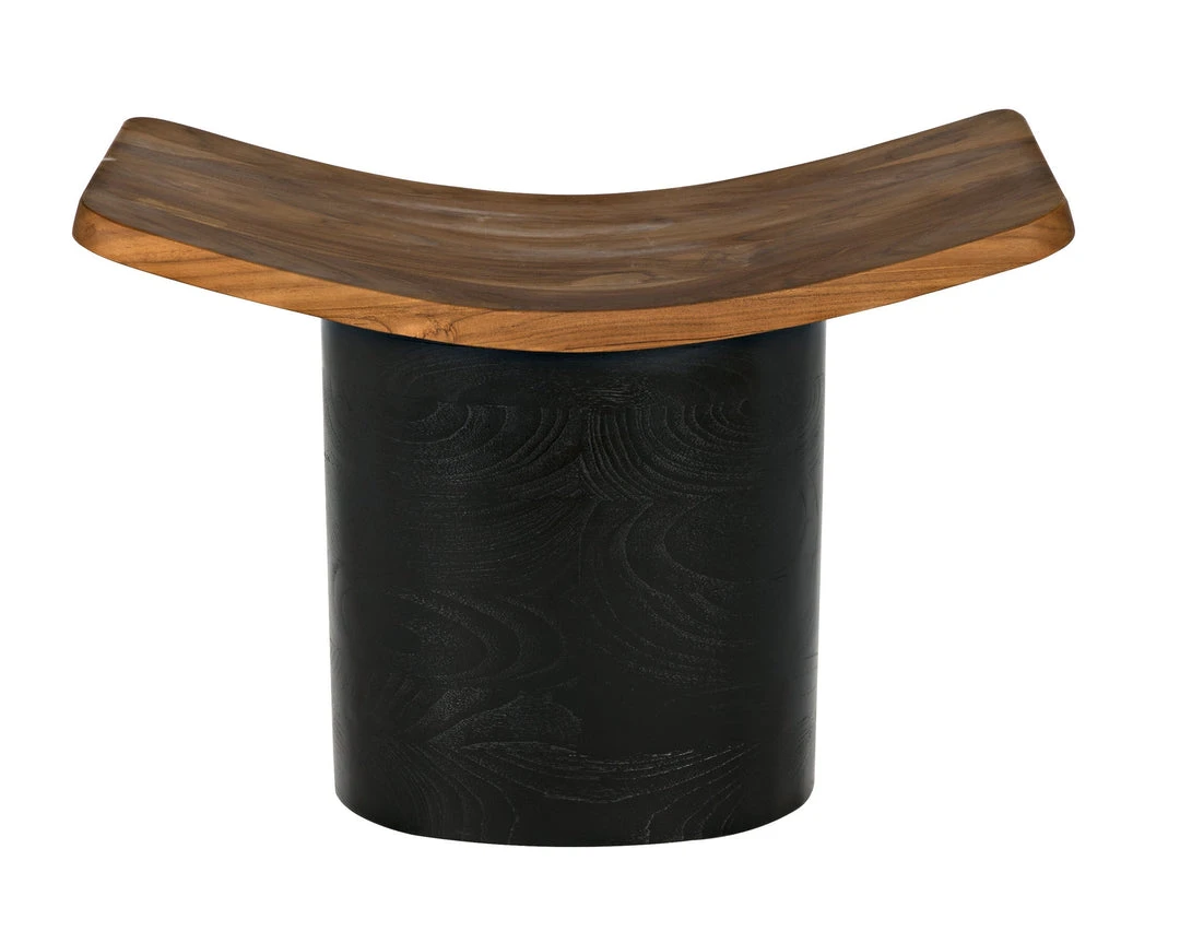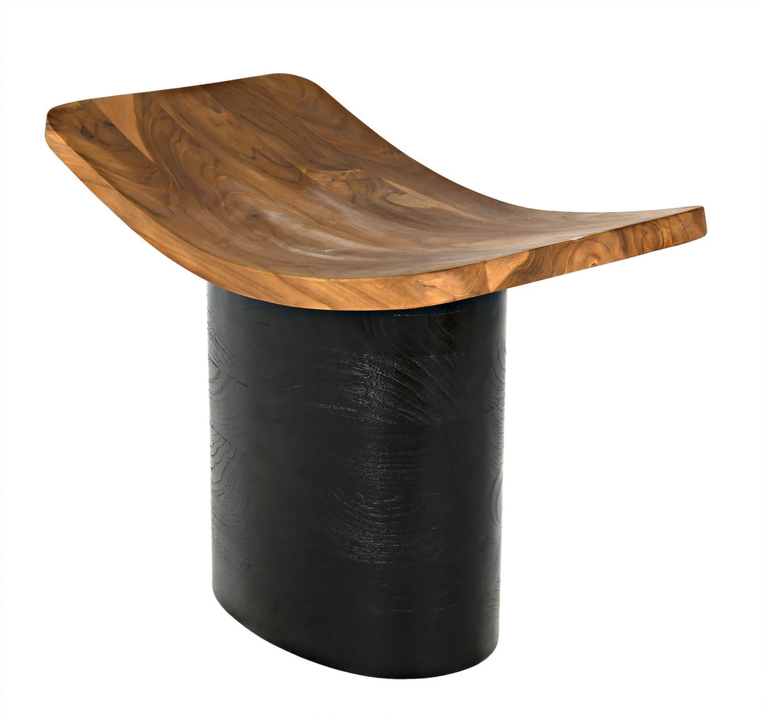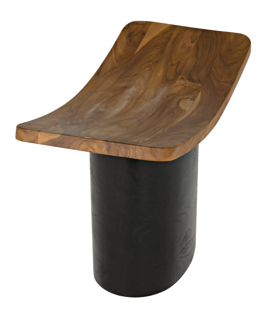 This handcrafted teak stool is distinguished by rich, contrasting, hand-applied finishes and easy lines that manage to be both timeless and modern. The cylindrical base is given multiple hand-applied layers of the deepest charcoal, while the simple curved cap seat’s semi-glass clear coat adds a touch of warmth.