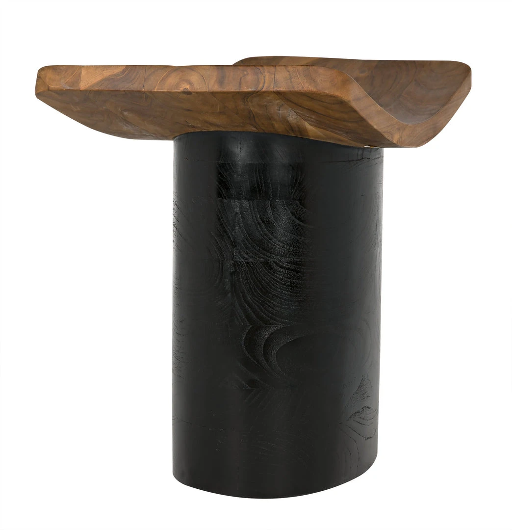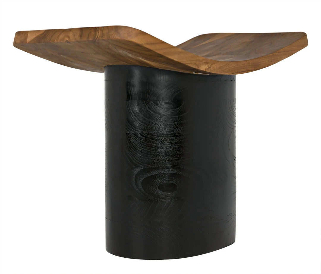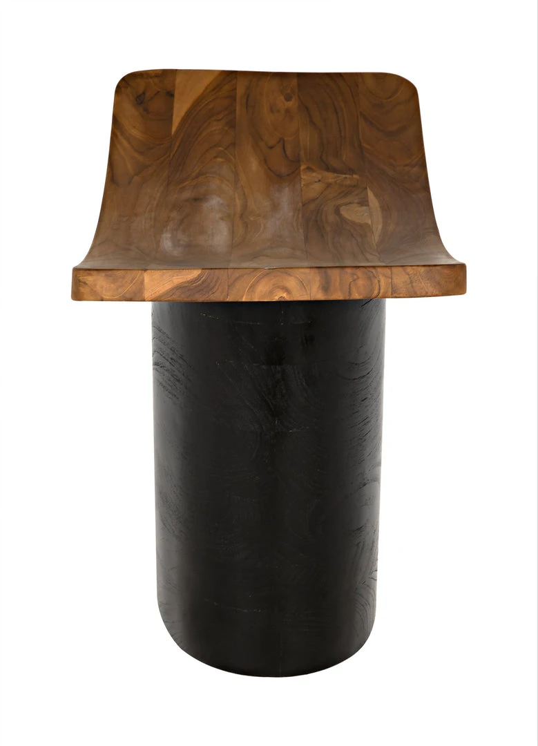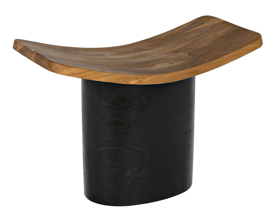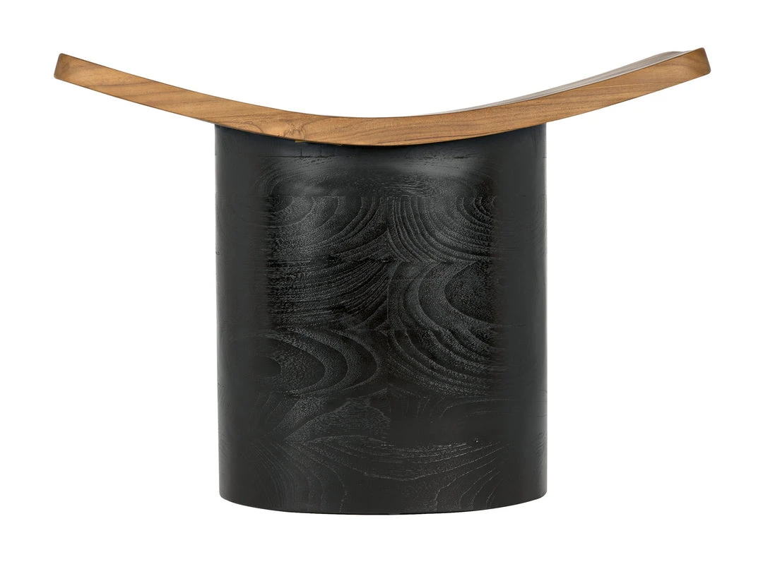 This handcrafted teak stool is distinguished by rich, contrasting, hand-applied finishes and easy lines that manage to be both timeless and modern. The cylindrical base is given multiple hand-applied layers of the deepest charcoal, while the simple curved cap seat’s semi-glass clear coat adds a touch of warmth.